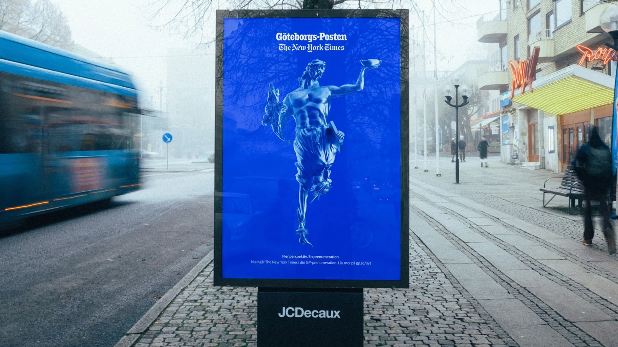 Forsman & Bodenfors assisted Swedish Newspaper, Göteborgs-Posten, in announcing their new partnership with The New York Times giving all GP subscribers digital access to the Times. To celebrate the launch, Forsman merged the two cities’ iconic statues into one, Poseidon of Liberty, and played around with different headlines for OOH that used homonyms from Swedish and English that united the two perspectives.