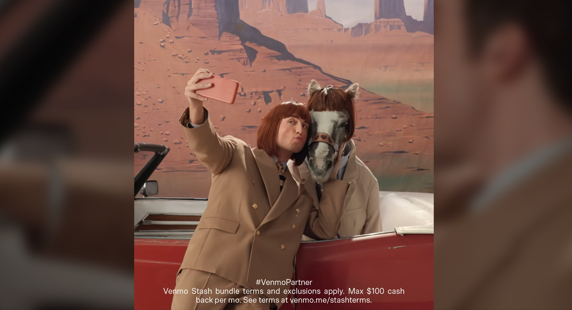 72andSunny continued their work with Venmo, this time bringing in Actor & Comedian Benito Skinner to introduce to the world Venmo Stash, the platform's all new cash back rewards program. The spot features Benito in a convertible with a pony and matching bobs, leaning into Benito’s fun and high energy spirit.